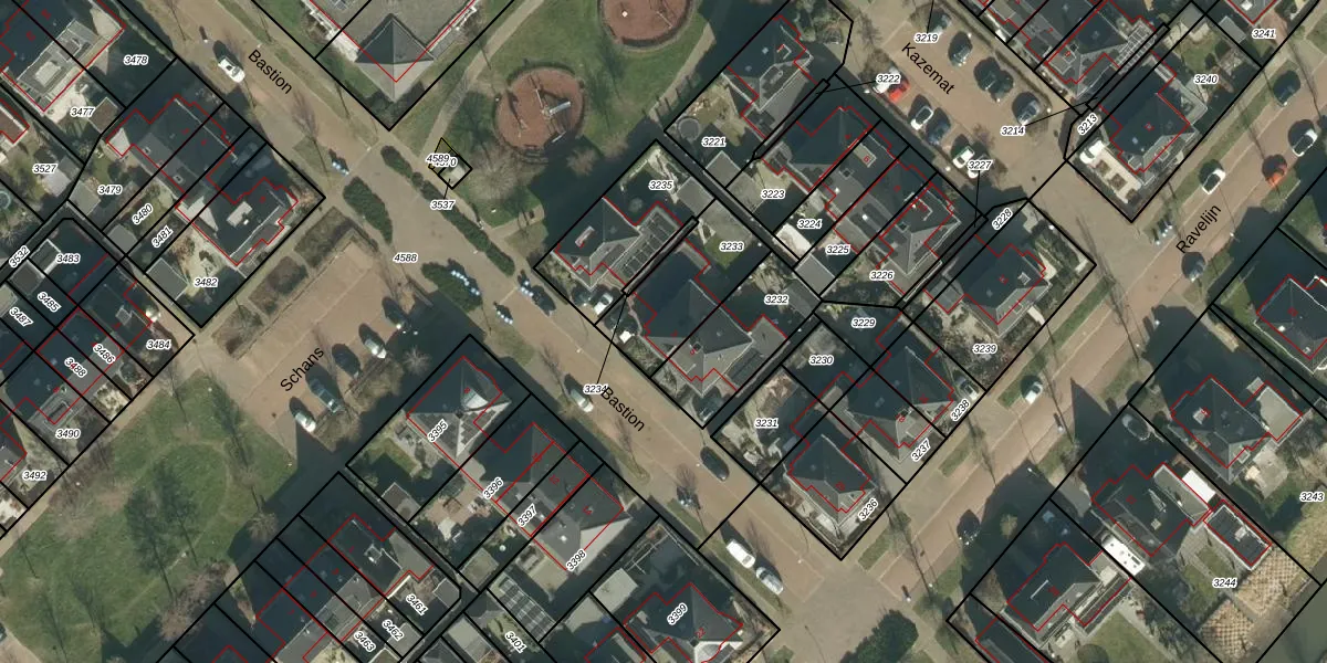 Het perceel waarop Bastion 3 staat heeft een oppervlakte van 299 m². Dit is een middelgroot perceel. De perceeloppervlakte wordt geregistreerd door het Kadaster. Gedetailleerde informatie over de maten van dit perceel kunt u vinden in het rapport Kadastrale kaart met maatvoering van Bastion 3.