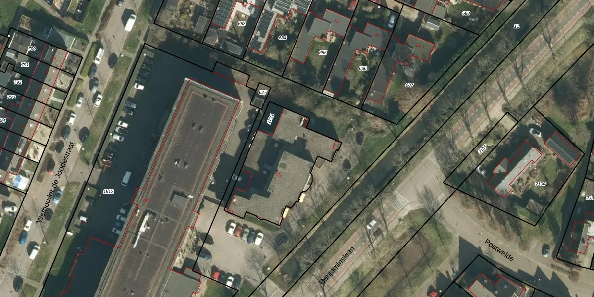 Het perceel waarop Benjaminslaan 22 staat heeft een oppervlakte van 836 m². Dit is een groot perceel. De perceeloppervlakte wordt geregistreerd door het Kadaster. Gedetailleerde informatie over de maten van dit perceel kunt u vinden in het rapport Kadastrale kaart met maatvoering van Benjaminslaan 22.
