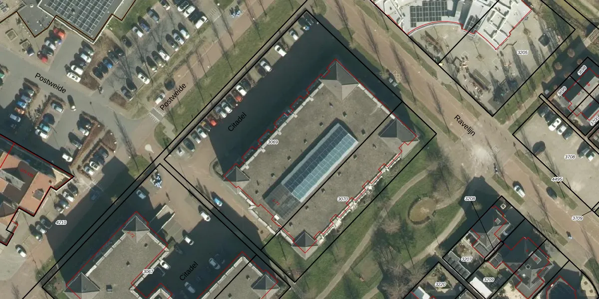 Het perceel waarop Citadel 23 staat heeft een oppervlakte van 3045 m². Dit is een zeer groot perceel. De perceeloppervlakte wordt geregistreerd door het Kadaster. Gedetailleerde informatie over de maten van dit perceel kunt u vinden in het rapport Kadastrale kaart met maatvoering van Citadel 23.