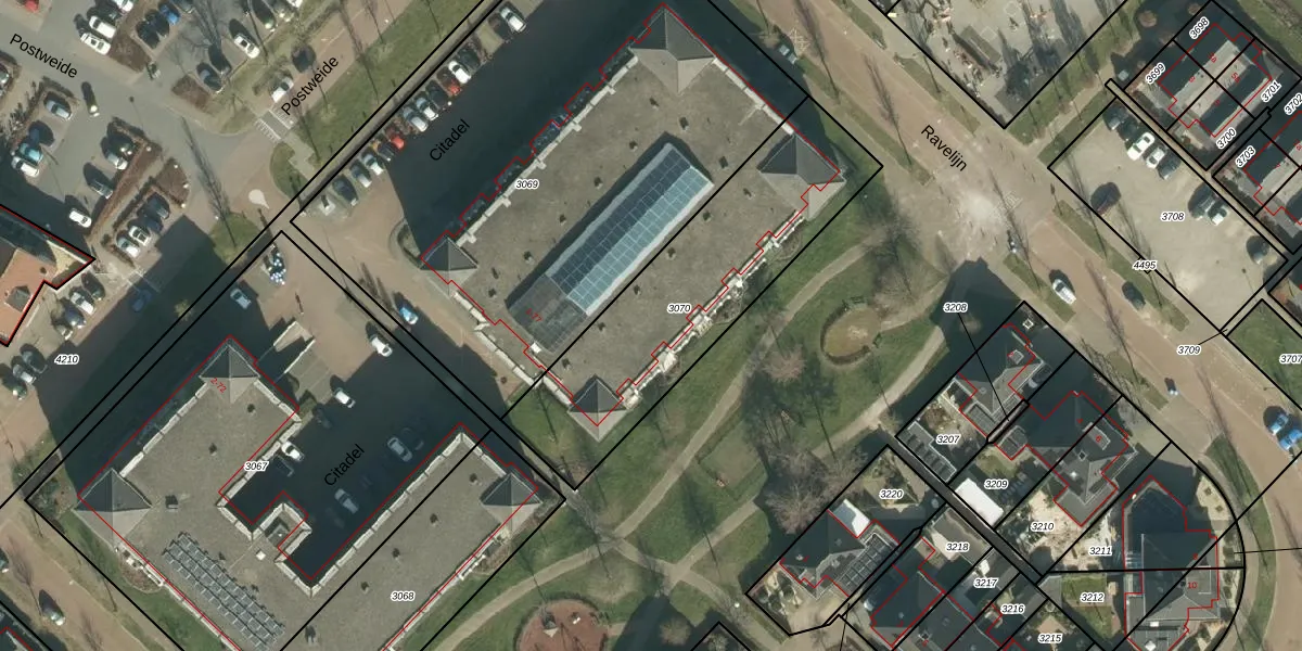Het perceel waarop Citadel 47 staat heeft een oppervlakte van 1075 m². Dit is een zeer groot perceel. De perceeloppervlakte wordt geregistreerd door het Kadaster. Gedetailleerde informatie over de maten van dit perceel kunt u vinden in het rapport Kadastrale kaart met maatvoering van Citadel 47.