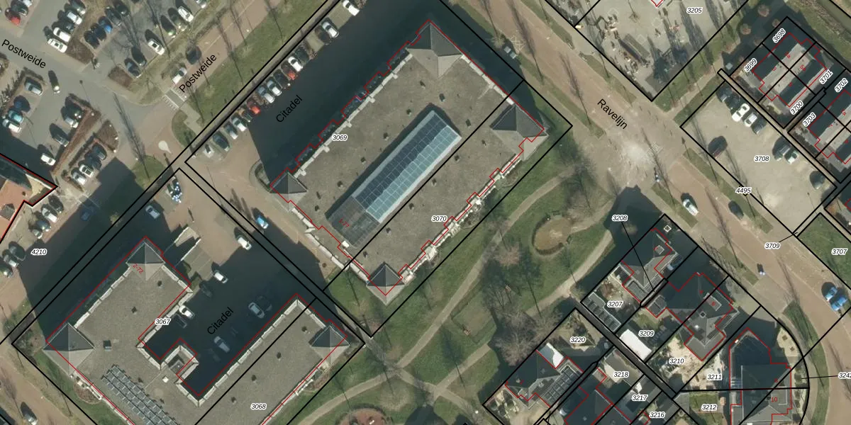 Het perceel waarop Citadel 51 staat heeft een oppervlakte van 1075 m². Dit is een zeer groot perceel. De perceeloppervlakte wordt geregistreerd door het Kadaster. Gedetailleerde informatie over de maten van dit perceel kunt u vinden in het rapport Kadastrale kaart met maatvoering van Citadel 51.