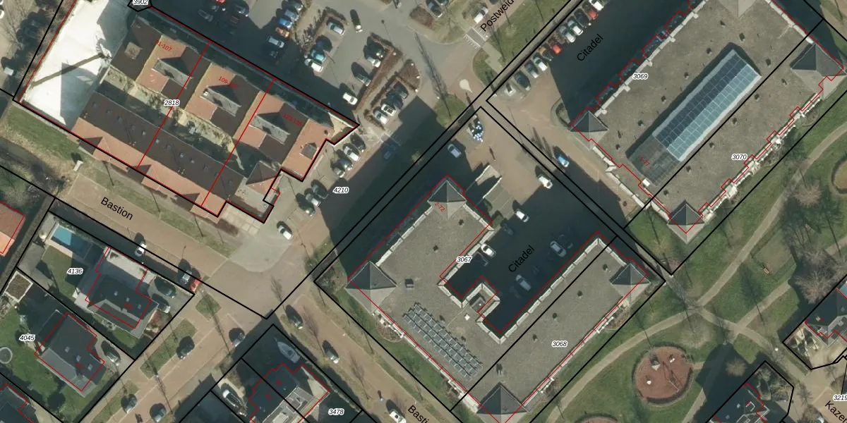 Het perceel waarop Citadel 8 staat heeft een oppervlakte van 2535 m². Dit is een zeer groot perceel. De perceeloppervlakte wordt geregistreerd door het Kadaster. Gedetailleerde informatie over de maten van dit perceel kunt u vinden in het rapport Kadastrale kaart met maatvoering van Citadel 8.
