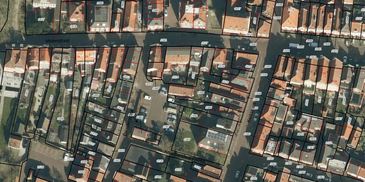 Daalderstraat 1-b is gelegen op kadastraal perceel WDC00H1584. Deze kadastrale aanduiding is uniek en wordt gebruikt door het Kadaster om eigendomsrechten en andere zakelijke rechten vast te leggen. Het perceel maakt onderdeel uit van de kadastrale gemeente Woudrichem.