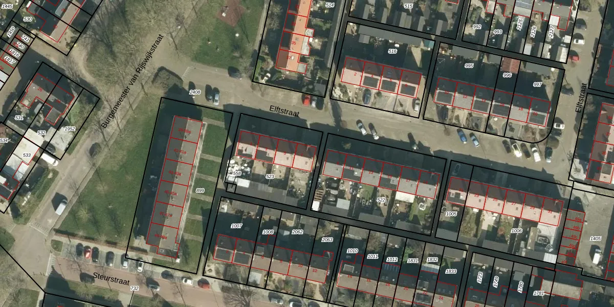 Het perceel waarop Elftstraat 7 staat heeft een oppervlakte van 715 m². Dit is een groot perceel. De perceeloppervlakte wordt geregistreerd door het Kadaster. Gedetailleerde informatie over de maten van dit perceel kunt u vinden in het rapport Kadastrale kaart met maatvoering van Elftstraat 7.