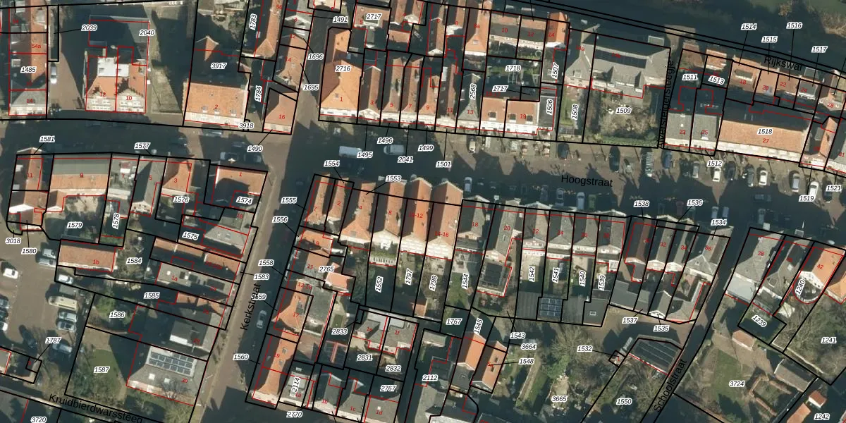 Het perceel waarop Hoogstraat 12 staat heeft een oppervlakte van 164 m². Dit is een middelgroot perceel. De perceeloppervlakte wordt geregistreerd door het Kadaster. Gedetailleerde informatie over de maten van dit perceel kunt u vinden in het rapport Kadastrale kaart met maatvoering van Hoogstraat 12.