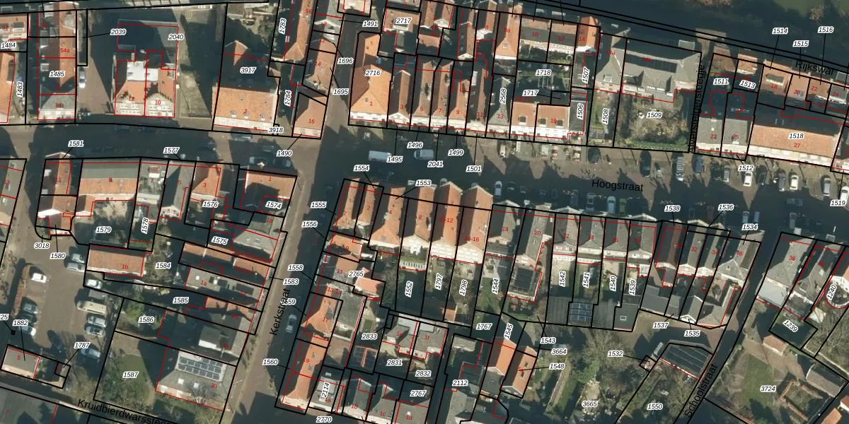 Het perceel waarop Hoogstraat 8 staat heeft een oppervlakte van 183 m². Dit is een middelgroot perceel. De perceeloppervlakte wordt geregistreerd door het Kadaster. Gedetailleerde informatie over de maten van dit perceel kunt u vinden in het rapport Kadastrale kaart met maatvoering van Hoogstraat 8.