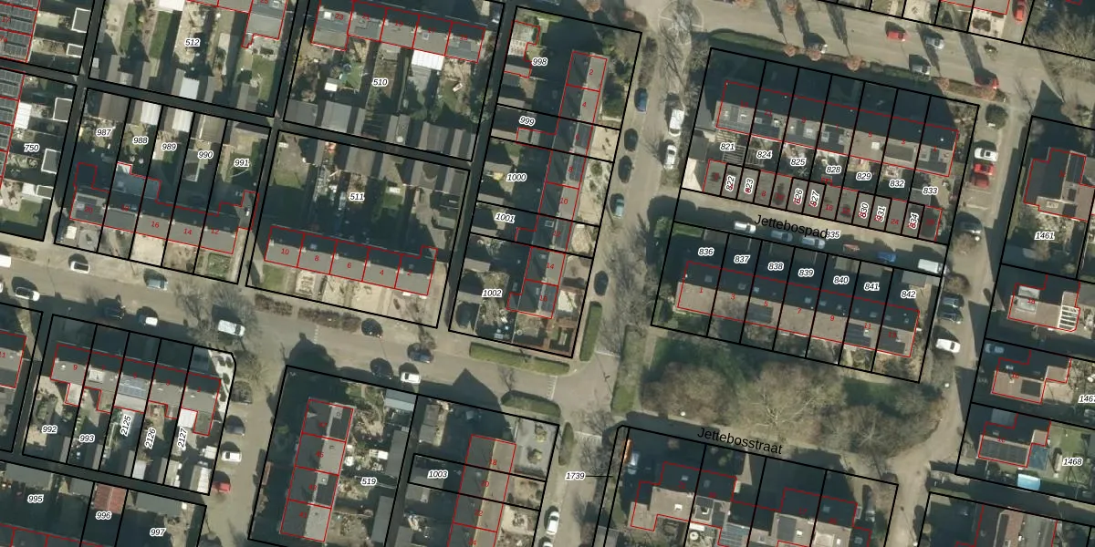 Jettebosstraat 14 is gelegen op kadastraal perceel WDC00D1002. Deze kadastrale aanduiding is uniek en wordt gebruikt door het Kadaster om eigendomsrechten en andere zakelijke rechten vast te leggen. Het perceel maakt onderdeel uit van de kadastrale gemeente Woudrichem.