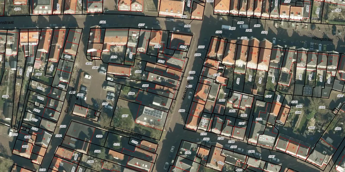 Het perceel waarop Kerkstraat 24 staat heeft een oppervlakte van 312 m². Dit is een groot perceel. De perceeloppervlakte wordt geregistreerd door het Kadaster. Gedetailleerde informatie over de maten van dit perceel kunt u vinden in het rapport Kadastrale kaart met maatvoering van Kerkstraat 24.
