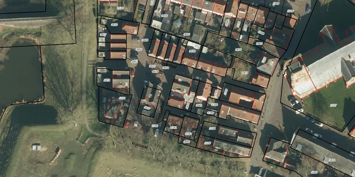 Kloosterhof 34 is gelegen op kadastraal perceel WDC00H1876. Deze kadastrale aanduiding is uniek en wordt gebruikt door het Kadaster om eigendomsrechten en andere zakelijke rechten vast te leggen. Het perceel maakt onderdeel uit van de kadastrale gemeente Woudrichem.