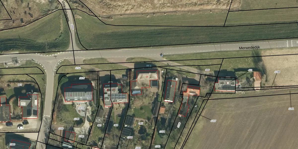 Het perceel waarop Merwededijk 13 staat heeft een oppervlakte van 1300 m². Dit is een zeer groot perceel. De perceeloppervlakte wordt geregistreerd door het Kadaster. Gedetailleerde informatie over de maten van dit perceel kunt u vinden in het rapport Kadastrale kaart met maatvoering van Merwededijk 13.