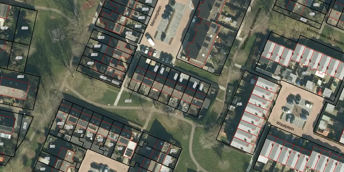 Gebruik de zoekbalk of klik op een perceel voor informatie over de adressen binnen dit perceel.