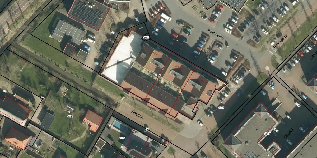 Het perceel waarop Postweide 109 staat heeft een oppervlakte van 2410 m². Dit is een zeer groot perceel. De perceeloppervlakte wordt geregistreerd door het Kadaster. Gedetailleerde informatie over de maten van dit perceel kunt u vinden in het rapport Kadastrale kaart met maatvoering van Postweide 109.