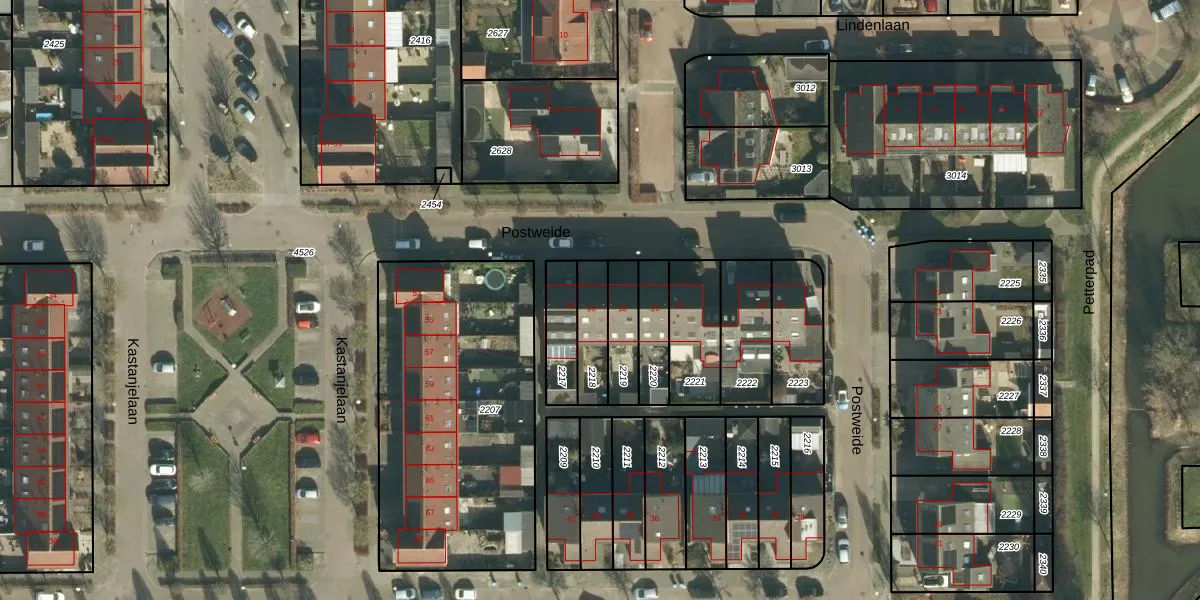 Gebruik de zoekbalk of klik op een perceel voor informatie over de adressen binnen dit perceel.