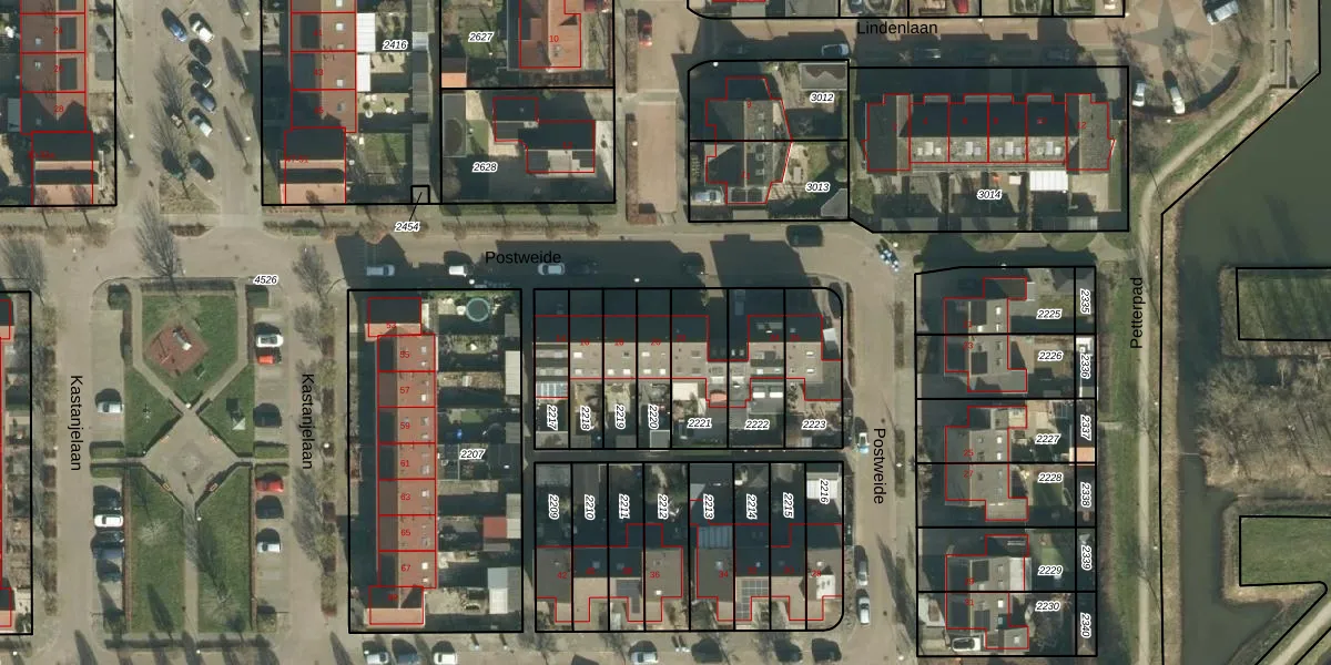 Het perceel waarop Postweide 20 staat heeft een oppervlakte van 123 m². Dit is een middelgroot perceel. De perceeloppervlakte wordt geregistreerd door het Kadaster. Gedetailleerde informatie over de maten van dit perceel kunt u vinden in het rapport Kadastrale kaart met maatvoering van Postweide 20.