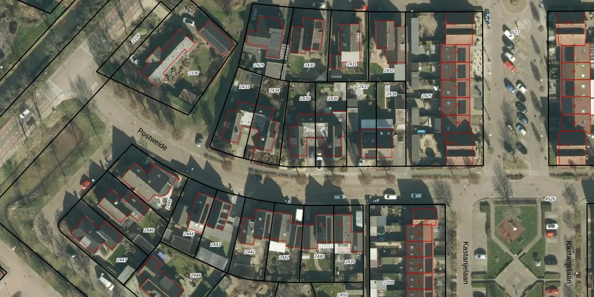 Het perceel waarop Postweide 5 staat heeft een oppervlakte van 301 m². Dit is een groot perceel. De perceeloppervlakte wordt geregistreerd door het Kadaster. Gedetailleerde informatie over de maten van dit perceel kunt u vinden in het rapport Kadastrale kaart met maatvoering van Postweide 5.