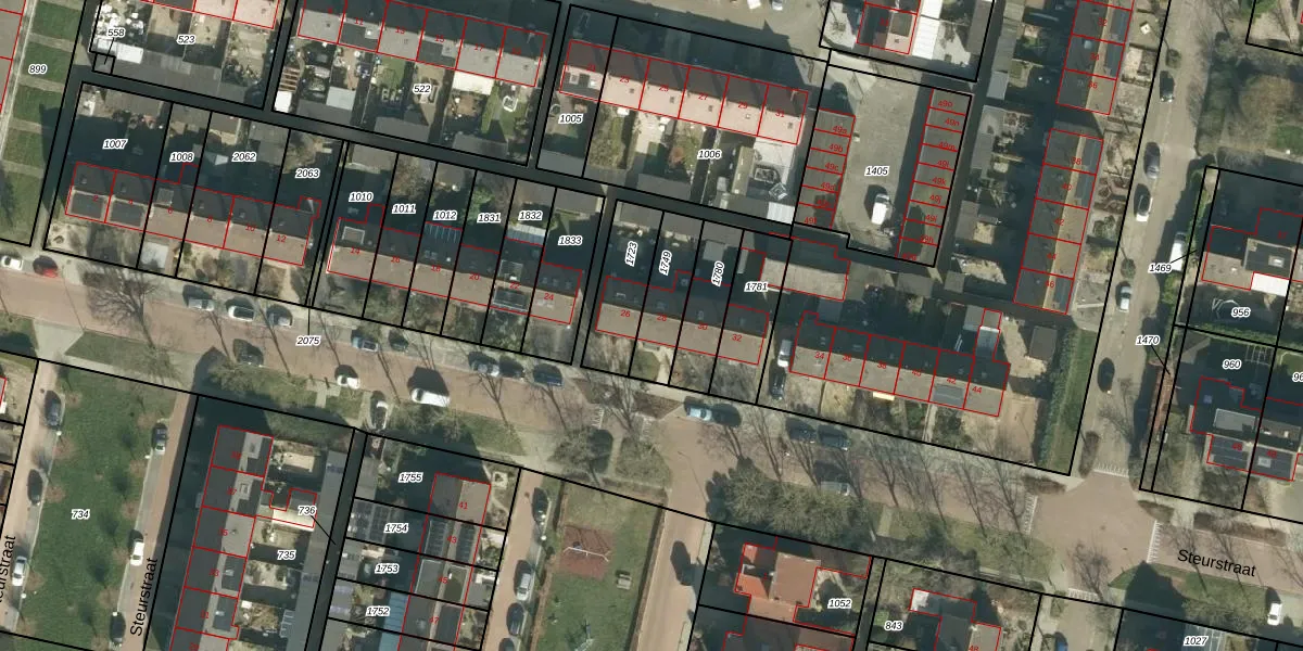 Het perceel waarop Steurstraat 28 staat heeft een oppervlakte van 166 m². Dit is een middelgroot perceel. De perceeloppervlakte wordt geregistreerd door het Kadaster. Gedetailleerde informatie over de maten van dit perceel kunt u vinden in het rapport Kadastrale kaart met maatvoering van Steurstraat 28.