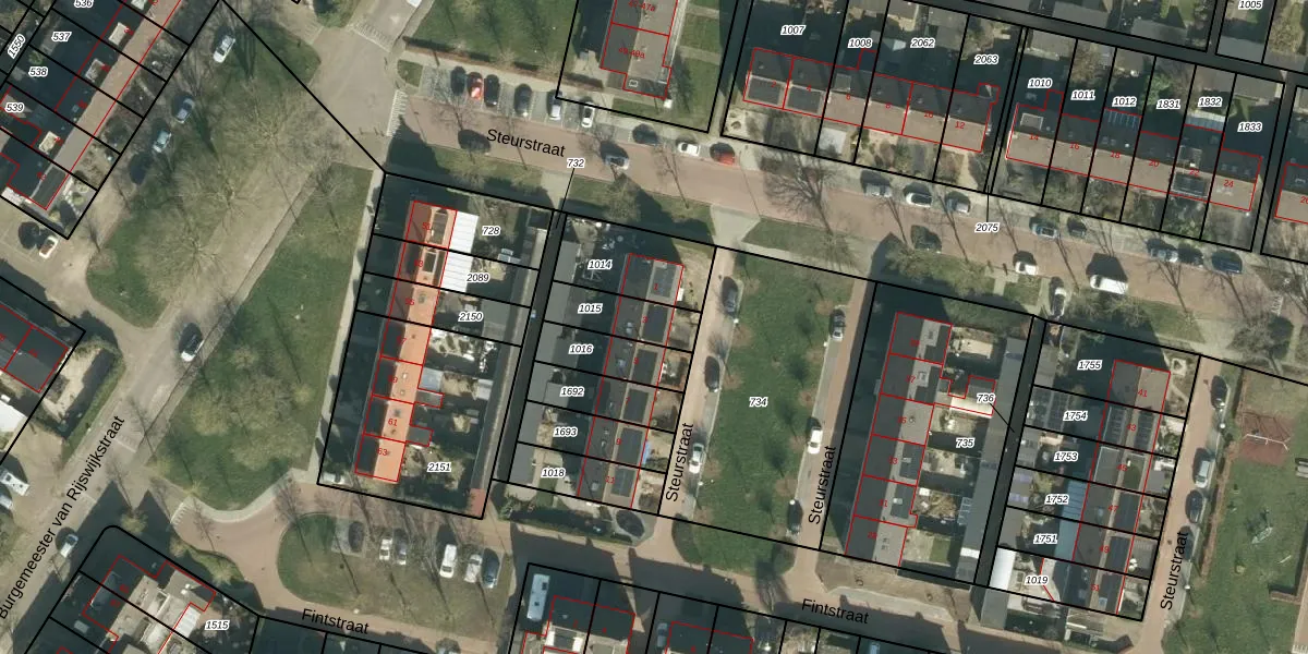 Gebruik de zoekbalk of klik op een perceel voor informatie over de adressen binnen dit perceel.