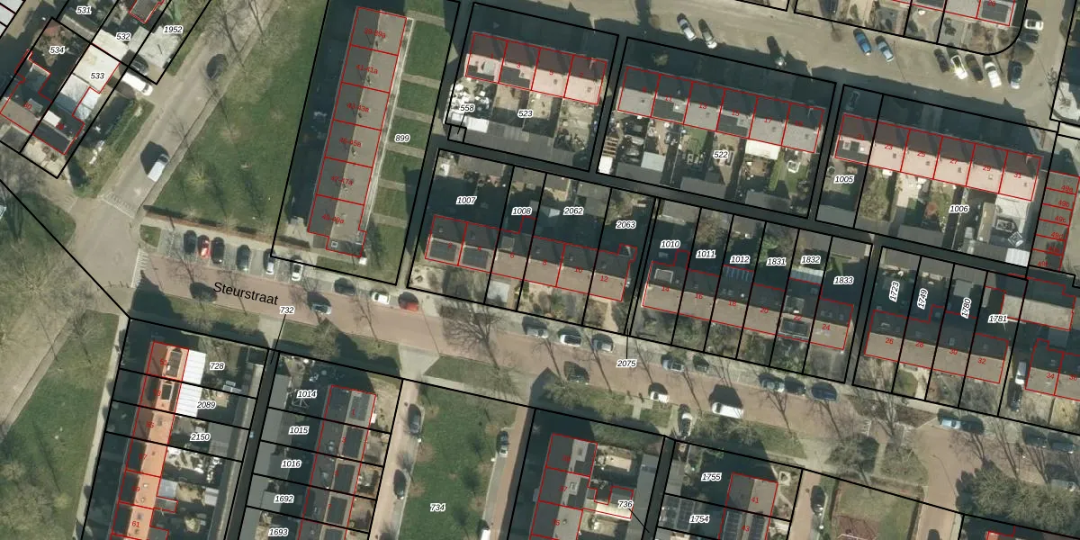 Het perceel waarop Steurstraat 8 staat heeft een oppervlakte van 326 m². Dit is een groot perceel. De perceeloppervlakte wordt geregistreerd door het Kadaster. Gedetailleerde informatie over de maten van dit perceel kunt u vinden in het rapport Kadastrale kaart met maatvoering van Steurstraat 8.