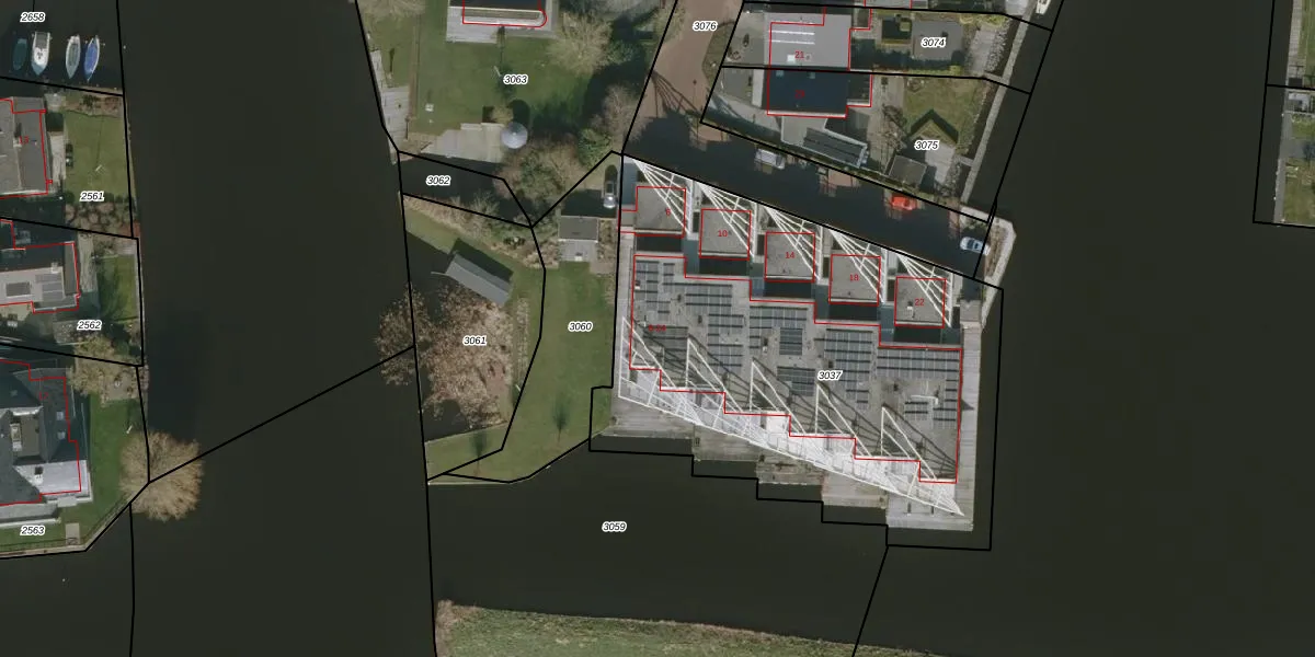 Het adres ligt op het perceel WED00-A-3037, dat zich in de kadastrale gemeente Woudsend bevindt. Het perceel is 2543 m² groot. Dat is kleiner dan de gemiddelde perceeloppervlakte in Woudsend, dat op 1,3 ha ligt. Het grootste perceel in de kadastrale gemeente is 1,93 km². Het kleinste perceel heeft een oppervlakte van 0 m². Er zijn 10 adressen aanwezig op het perceel. De huidige grenzen van het perceel zijn digitaal in de Basisregistratie Kadaster (BRK) geregistreerd op 12-01-2009.