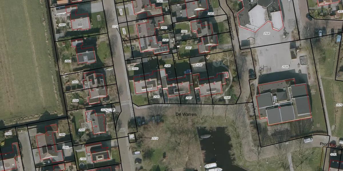 Het perceel waarop De Warren 35 staat heeft een oppervlakte van 269 m². Dit is een middelgroot perceel. De perceeloppervlakte wordt geregistreerd door het Kadaster. Gedetailleerde informatie over de maten van dit perceel kunt u vinden in het rapport Kadastrale kaart met maatvoering van De Warren 35.