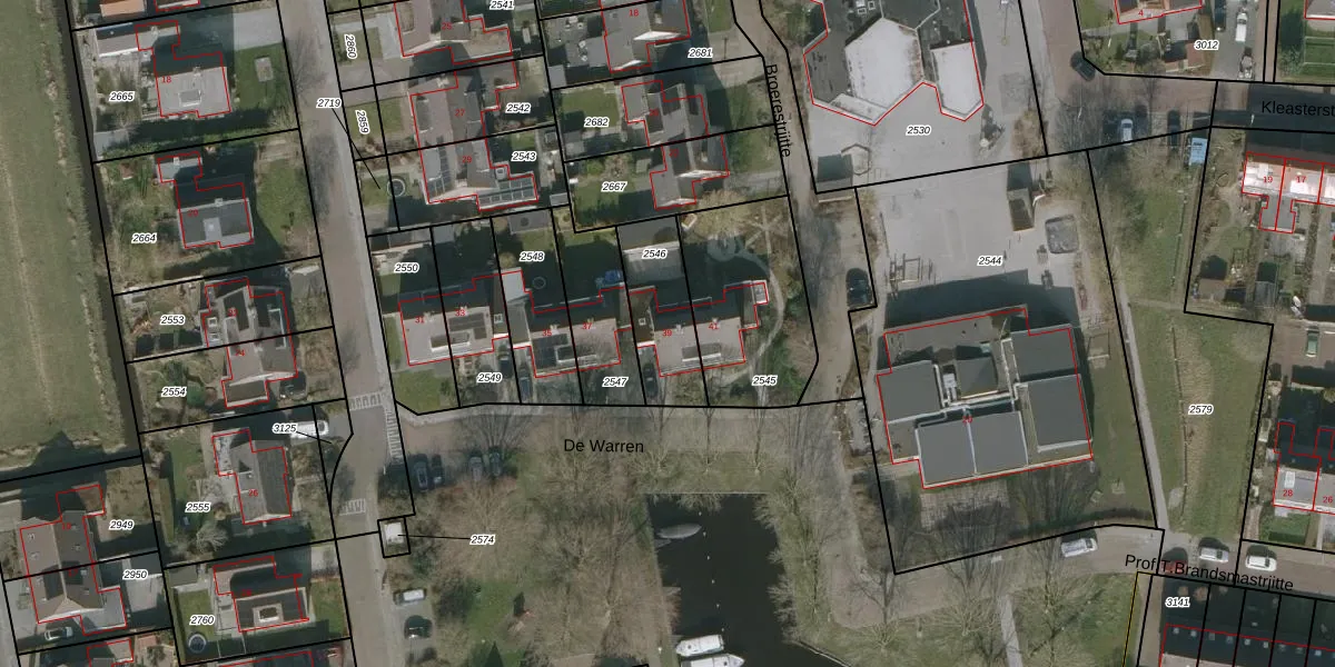 De Warren 39 is gelegen op kadastraal perceel WED00A2546. Deze kadastrale aanduiding is uniek en wordt gebruikt door het Kadaster om eigendomsrechten en andere zakelijke rechten vast te leggen. Het perceel maakt onderdeel uit van de kadastrale gemeente Woudsend.