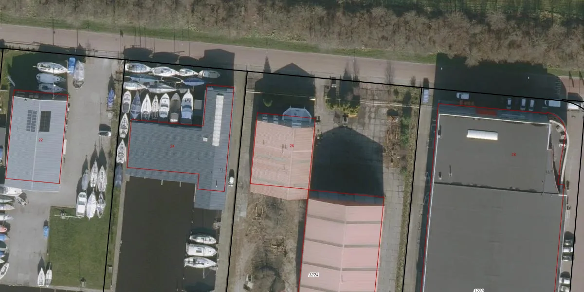 Het adres ligt op het perceel WED00-D-1224, dat zich in de kadastrale gemeente Woudsend bevindt. Het perceel is 7529 m² groot. Dat is kleiner dan de gemiddelde perceeloppervlakte in Woudsend, dat op 1,3 ha ligt. Het kleinste perceel in de kadastrale gemeente is 0 m² groot. De grootste perceeloppervlakte is 1,93 km². Op het perceel zijn 2 adressen aanwezig. In de Basisregistratie Kadaster (BRK) werden de grenzen van het perceel geregistreerd op 09-02-2007.
