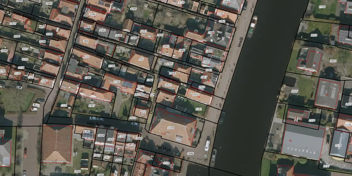 Gebruik de zoekbalk of klik op een perceel voor informatie over de adressen binnen dit perceel.