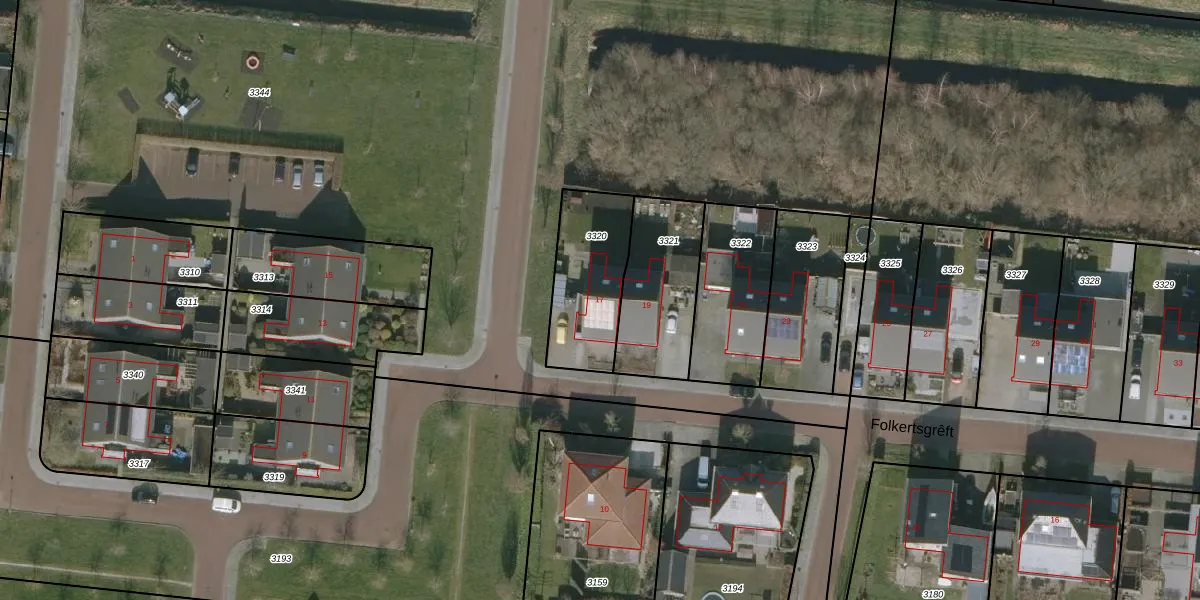 Het perceel waarop Folkertsgrêft 17 staat heeft een oppervlakte van 346 m². Dit is een groot perceel. De perceeloppervlakte wordt geregistreerd door het Kadaster. Gedetailleerde informatie over de maten van dit perceel kunt u vinden in het rapport Kadastrale kaart met maatvoering van Folkertsgrêft 17.