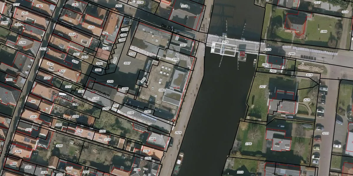 Het adres is gelegen op perceel 3384 in de sectie A en de kadastrale gemeente Woudsend. De kadastrale aanduiding is aldus WED00-A-3384. Het perceel is kleiner dan gemiddeld in Woudsend. Het perceel is 1194 m² groot, terwijl het gemiddelde ligt op 1,3 ha. De grootste perceeloppervlakte in de kadastrale gemeente is 1,93 km². De kleinste oppervlakte bedraagt 0 m². Op het perceel zijn 15 adressen aanwezig. De laatste wijziging in het de Basisregistratie Kadaster (BRK) was op 07-09-2023.