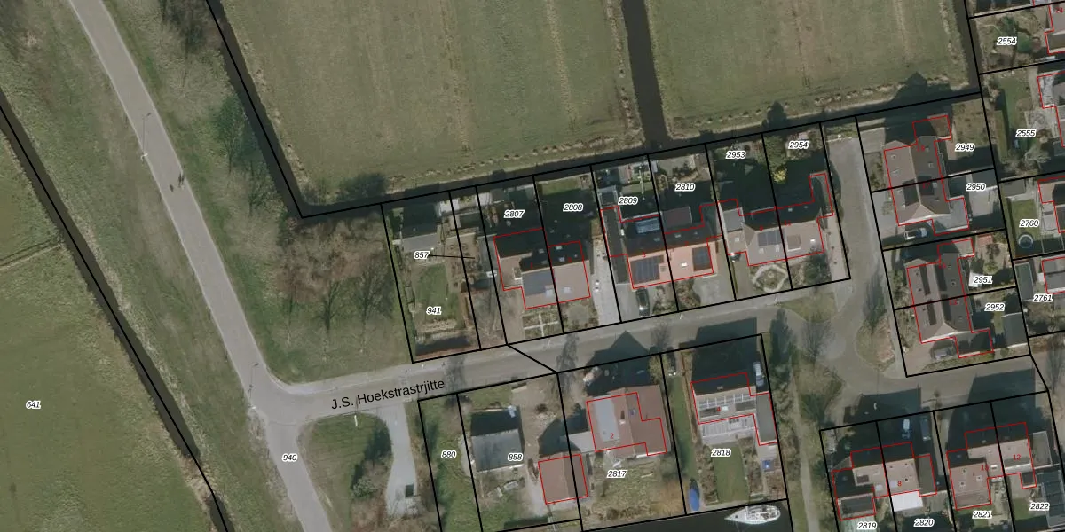 J.S. Hoekstrastrjitte 1 is gelegen op kadastraal perceel WED00A2807. Deze kadastrale aanduiding is uniek en wordt gebruikt door het Kadaster om eigendomsrechten en andere zakelijke rechten vast te leggen. Het perceel maakt onderdeel uit van de kadastrale gemeente Woudsend.