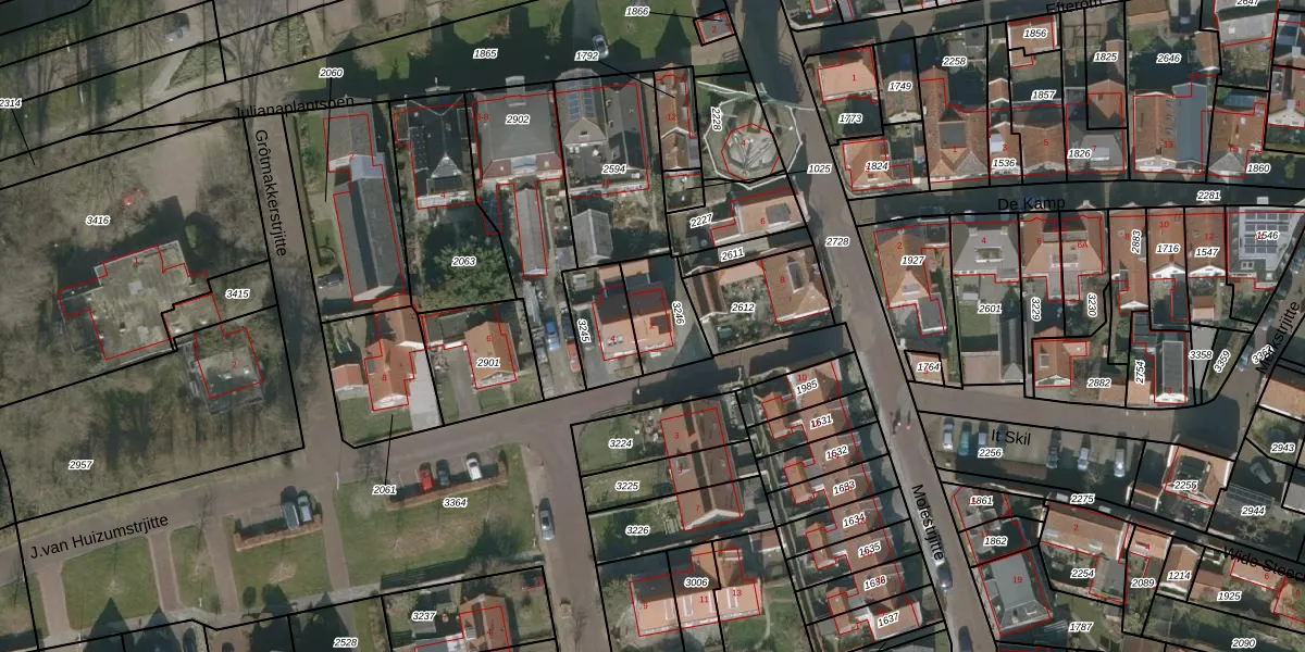 Het perceel waarop J.van Huizumstrjitte 2 staat heeft een oppervlakte van 170 m². Dit is een middelgroot perceel. De perceeloppervlakte wordt geregistreerd door het Kadaster. Gedetailleerde informatie over de maten van dit perceel kunt u vinden in het rapport Kadastrale kaart met maatvoering van J.van Huizumstrjitte 2.