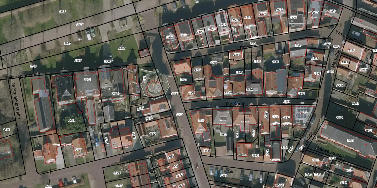 Het perceel waarop het adres ligt is WED00-A-1824. De afkorting 'WED00' staat voor kadastrale gemeente Woudsend. De gemiddelde perceelgrootte in Woudsend is 1,3 ha. Dit perceel is kleiner: de perceeloppervlakte bedraagt 132 m². De grootste perceeloppervlakte in de kadastrale gemeente is 1,93 km². De kleinste oppervlakte bedraagt 0 m². Er zijn geen andere adressen aanwezig op het perceel. De laatste wijziging in het de Basisregistratie Kadaster (BRK) was op 15-01-1998.
