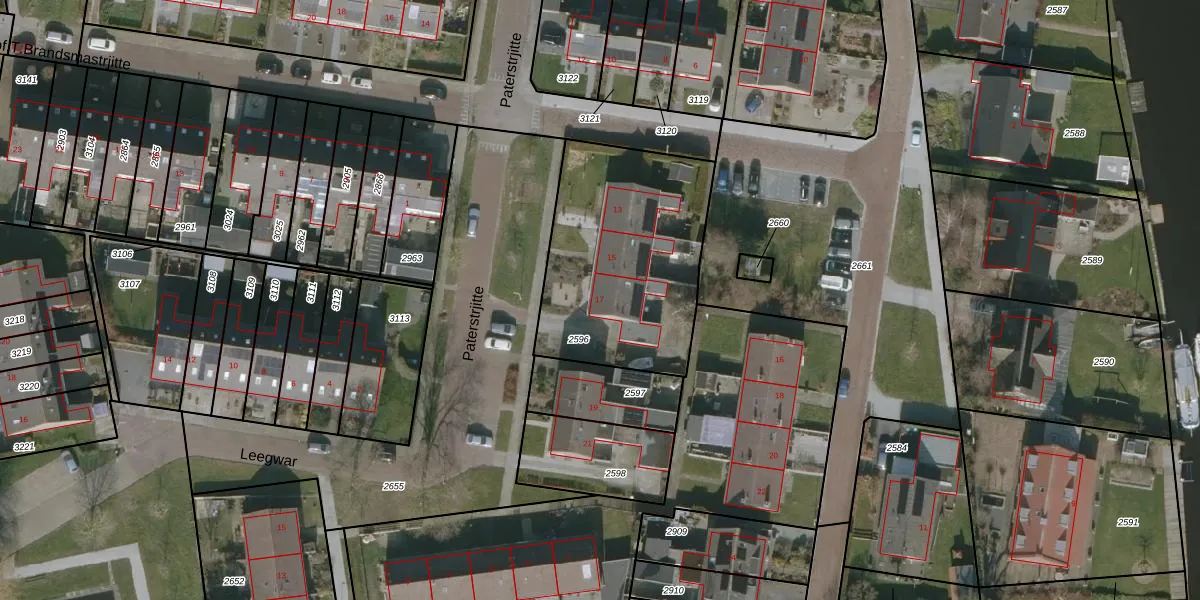Het perceel waarop Paterstrjitte 17 staat heeft een oppervlakte van 905 m². Dit is een groot perceel. De perceeloppervlakte wordt geregistreerd door het Kadaster. Gedetailleerde informatie over de maten van dit perceel kunt u vinden in het rapport Kadastrale kaart met maatvoering van Paterstrjitte 17.