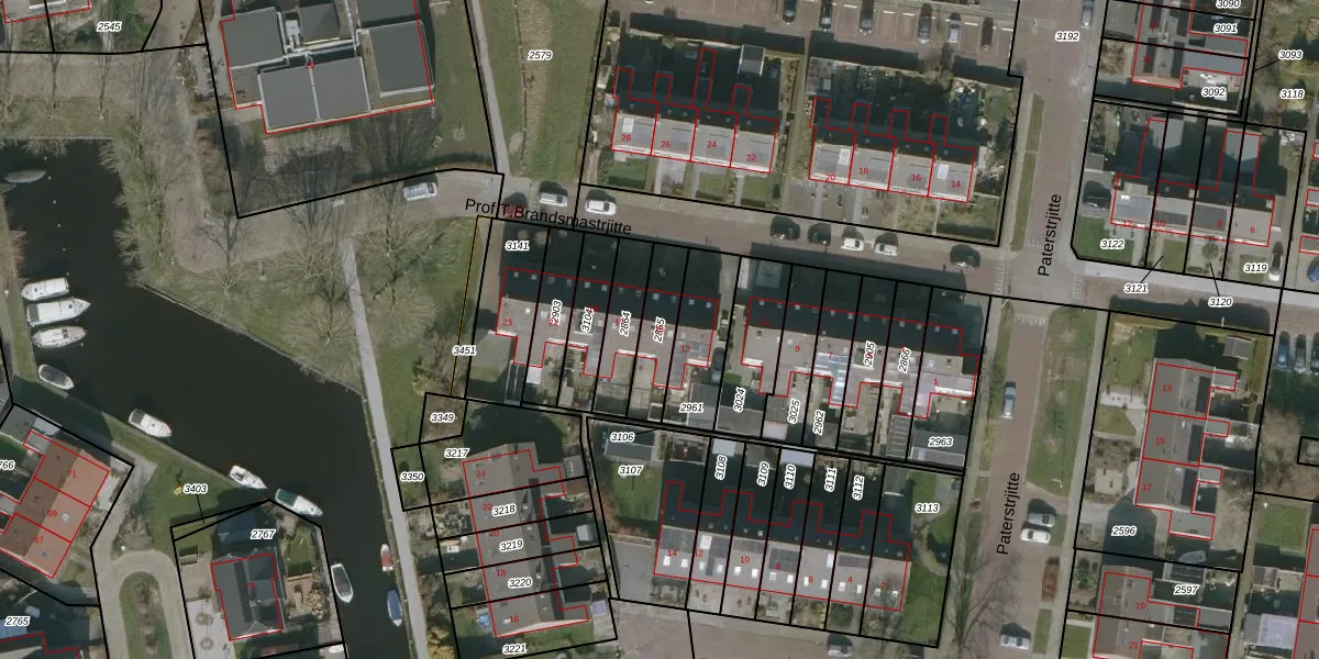 Prof.T.Brandsmastrjitte 15 is gelegen op kadastraal perceel WED00A2865. Deze kadastrale aanduiding is uniek en wordt gebruikt door het Kadaster om eigendomsrechten en andere zakelijke rechten vast te leggen. Het perceel maakt onderdeel uit van de kadastrale gemeente Woudsend.