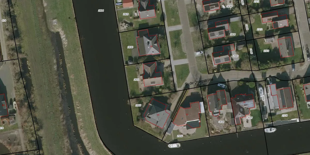 S. de Jongstrjitte 18 is gelegen op kadastraal perceel WED00A2831. Deze kadastrale aanduiding is uniek en wordt gebruikt door het Kadaster om eigendomsrechten en andere zakelijke rechten vast te leggen. Het perceel maakt onderdeel uit van de kadastrale gemeente Woudsend.