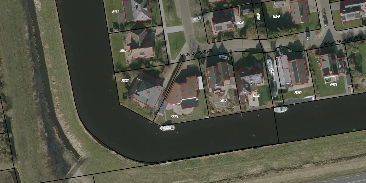 S. de Jongstrjitte 22 is gelegen op kadastraal perceel WED00A2956. Deze kadastrale aanduiding is uniek en wordt gebruikt door het Kadaster om eigendomsrechten en andere zakelijke rechten vast te leggen. Het perceel maakt onderdeel uit van de kadastrale gemeente Woudsend.