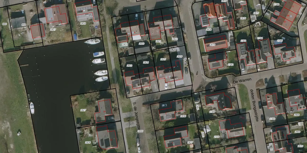 S. de Jongstrjitte 6 is gelegen op kadastraal perceel WED00A2824. Deze kadastrale aanduiding is uniek en wordt gebruikt door het Kadaster om eigendomsrechten en andere zakelijke rechten vast te leggen. Het perceel maakt onderdeel uit van de kadastrale gemeente Woudsend.