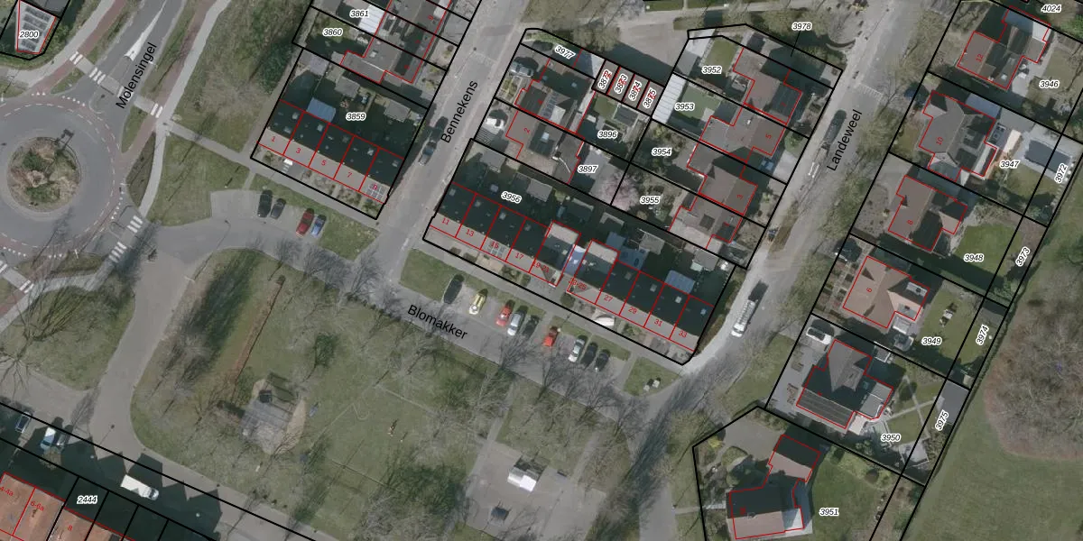 Blomakker 21 is gelegen op kadastraal perceel WOU00E3956. Deze kadastrale aanduiding is uniek en wordt gebruikt door het Kadaster om eigendomsrechten en andere zakelijke rechten vast te leggen. Het perceel maakt onderdeel uit van de kadastrale gemeente Wouw.