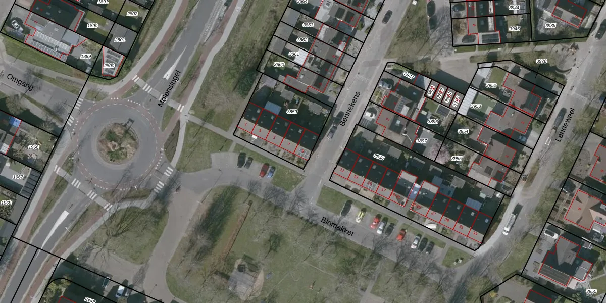 Het perceel waarop Blomakker 9 staat heeft een oppervlakte van 580 m². Dit is een groot perceel. De perceeloppervlakte wordt geregistreerd door het Kadaster. Gedetailleerde informatie over de maten van dit perceel kunt u vinden in het rapport Kadastrale kaart met maatvoering van Blomakker 9.