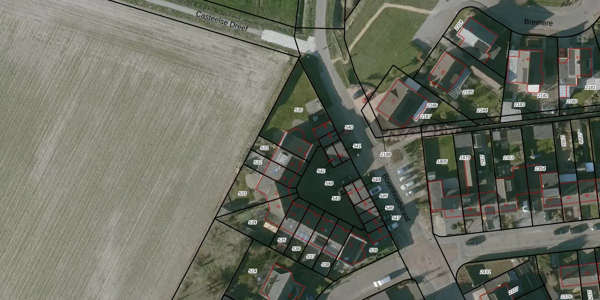 Boomhoefstraat 43 is gelegen op kadastraal perceel WOU00Q530. Deze kadastrale aanduiding is uniek en wordt gebruikt door het Kadaster om eigendomsrechten en andere zakelijke rechten vast te leggen. Het perceel maakt onderdeel uit van de kadastrale gemeente Wouw.
