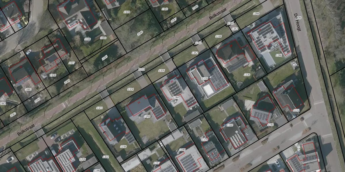 Het perceel waarop Bulkstraat 20 staat heeft een oppervlakte van 513 m². Dit is een groot perceel. De perceeloppervlakte wordt geregistreerd door het Kadaster. Gedetailleerde informatie over de maten van dit perceel kunt u vinden in het rapport Kadastrale kaart met maatvoering van Bulkstraat 20.