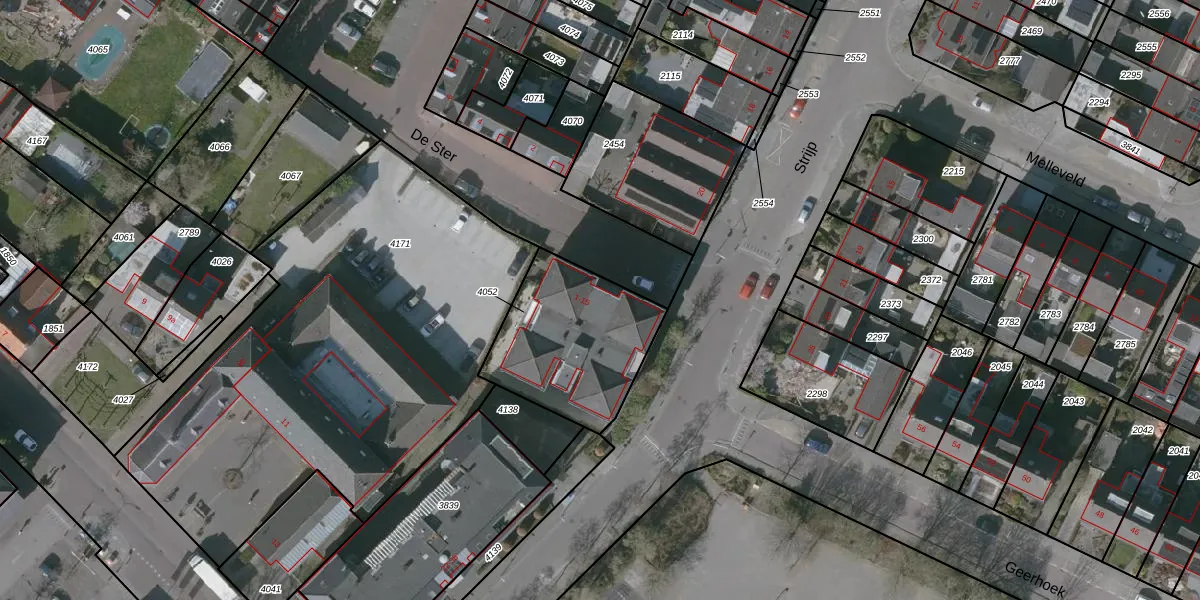 Het perceel waarop De Ster 15 staat heeft een oppervlakte van 563 m². Dit is een groot perceel. De perceeloppervlakte wordt geregistreerd door het Kadaster. Gedetailleerde informatie over de maten van dit perceel kunt u vinden in het rapport Kadastrale kaart met maatvoering van De Ster 15.
