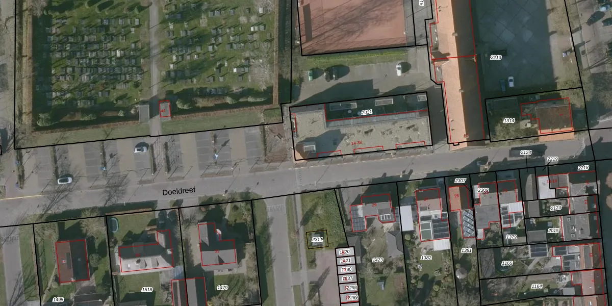Doeldreef 24 is gelegen op kadastraal perceel WOU00L2031. Deze kadastrale aanduiding is uniek en wordt gebruikt door het Kadaster om eigendomsrechten en andere zakelijke rechten vast te leggen. Het perceel maakt onderdeel uit van de kadastrale gemeente Wouw.
