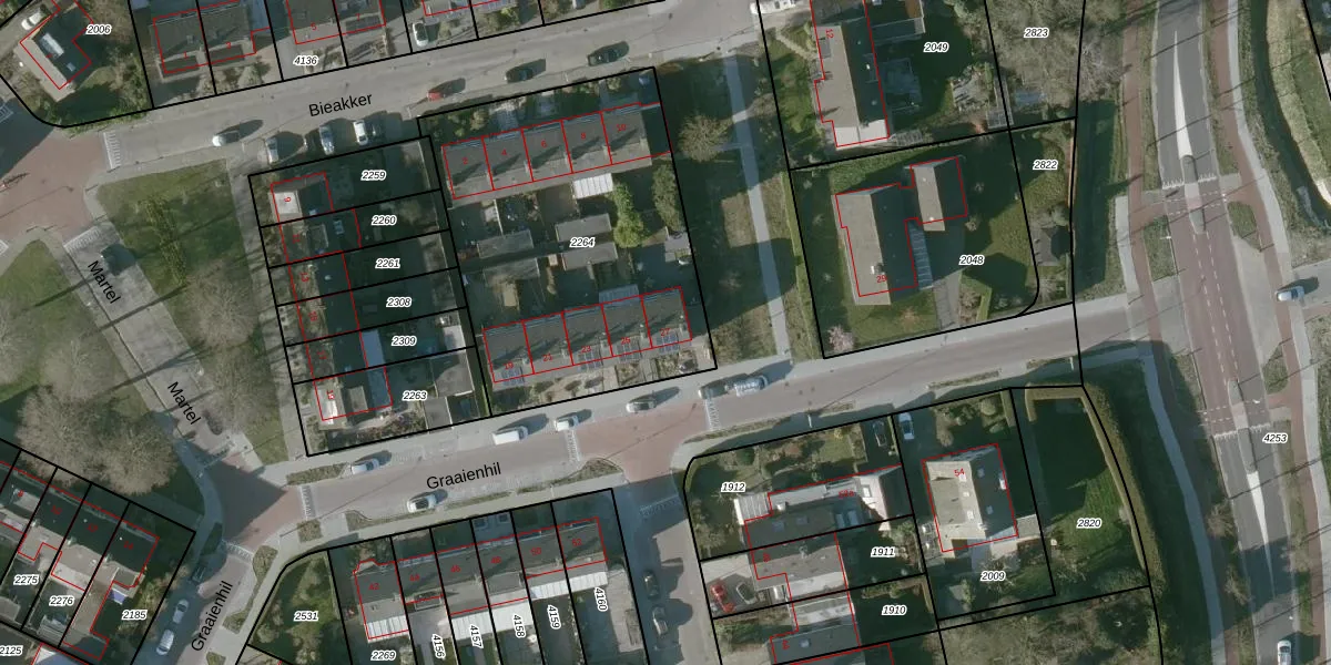 Graaienhil 27 is gelegen op kadastraal perceel WOU00E2264. Deze kadastrale aanduiding is uniek en wordt gebruikt door het Kadaster om eigendomsrechten en andere zakelijke rechten vast te leggen. Het perceel maakt onderdeel uit van de kadastrale gemeente Wouw.