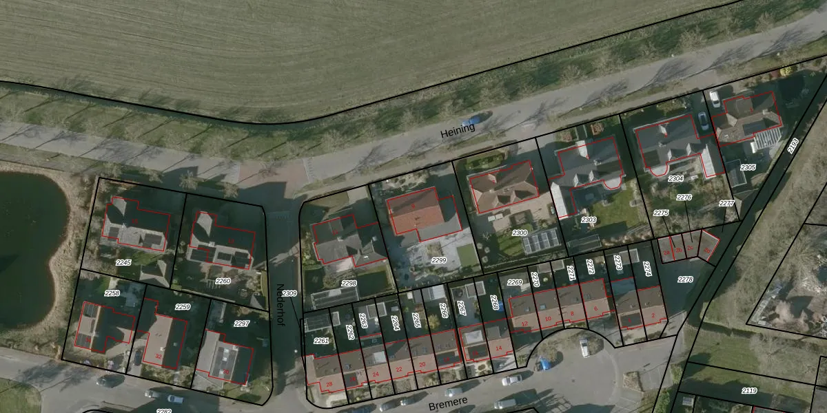 Het perceel waarop Heining 9 staat heeft een oppervlakte van 590 m². Dit is een groot perceel. De perceeloppervlakte wordt geregistreerd door het Kadaster. Gedetailleerde informatie over de maten van dit perceel kunt u vinden in het rapport Kadastrale kaart met maatvoering van Heining 9.