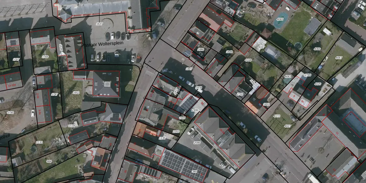 Het adres is gelegen op perceel 1878 in de sectie L en de kadastrale gemeente Wouw. De kadastrale aanduiding is aldus WOU00-L-1878. Het perceel is 235 m² groot. Dat is kleiner dan de gemiddelde perceeloppervlakte in Wouw, dat op 7089,7 m² ligt. Het kleinste perceel in de kadastrale gemeente is 0 m² groot. De grootste perceeloppervlakte is 35,4 ha. Op het perceel zijn 4 adressen aanwezig. In de Basisregistratie Kadaster (BRK) werden de grenzen van het perceel geregistreerd op 12-12-2008.
