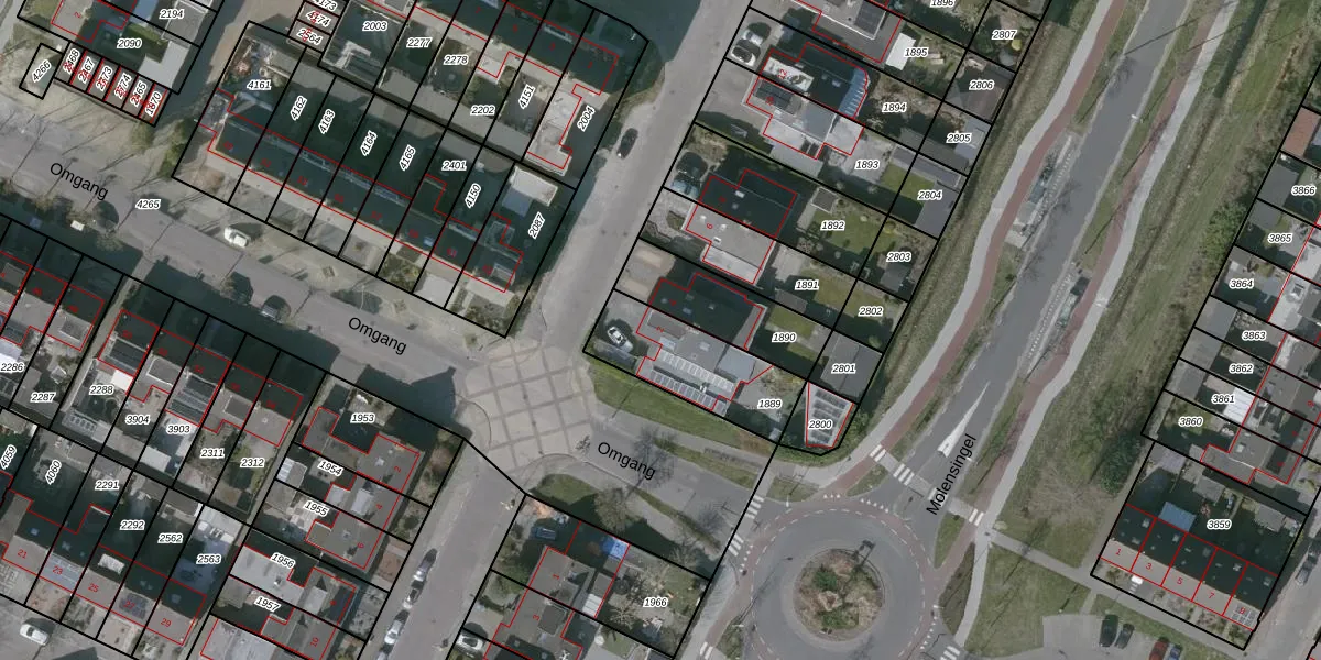 Gebruik de zoekbalk of klik op een perceel voor informatie over de adressen binnen dit perceel.