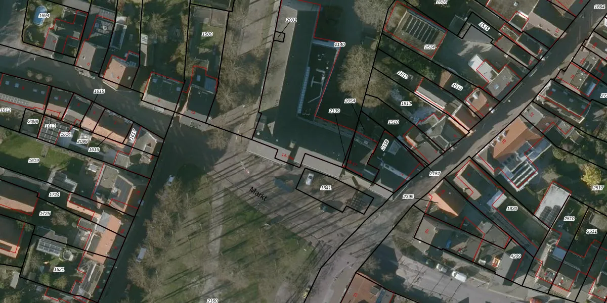 Het perceel waarop Markt 14-c staat heeft een oppervlakte van 1962 m². Dit is een zeer groot perceel. De perceeloppervlakte wordt geregistreerd door het Kadaster. Gedetailleerde informatie over de maten van dit perceel kunt u vinden in het rapport Kadastrale kaart met maatvoering van Markt 14-c.