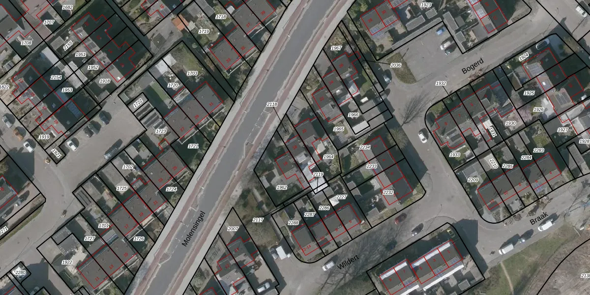 Gebruik de zoekbalk of klik op een perceel voor informatie over de adressen binnen dit perceel.