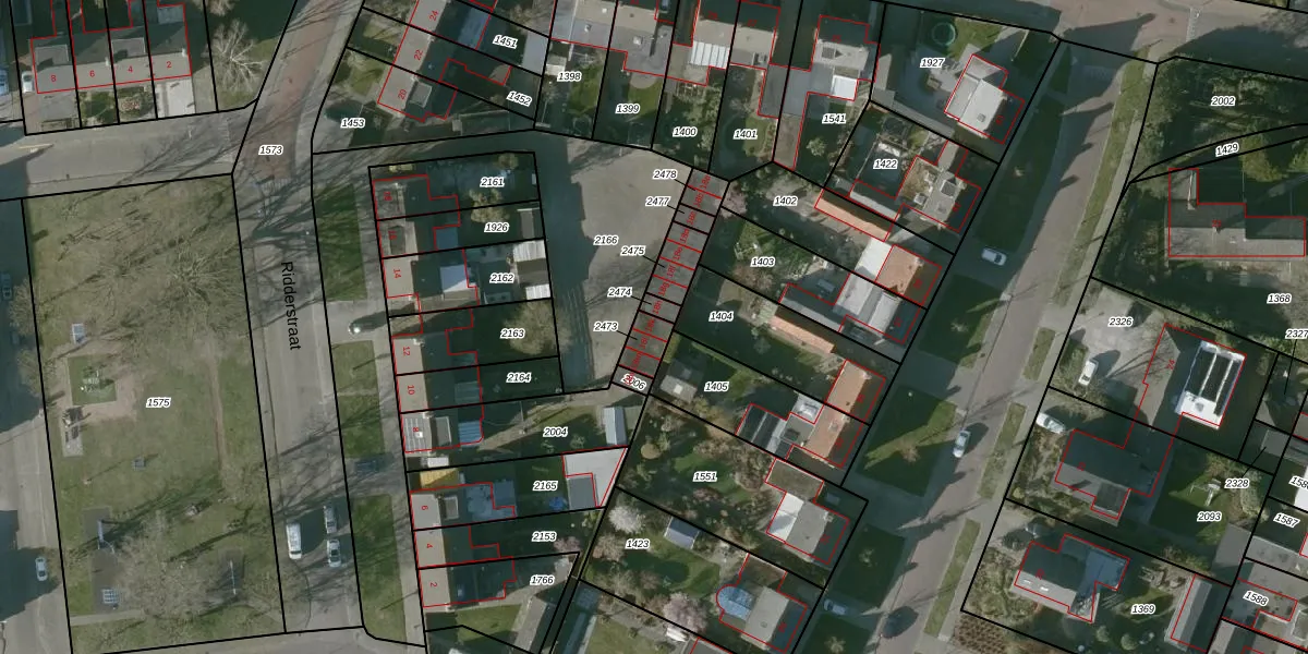 Ridderstraat 18-k is gelegen op kadastraal perceel WOU00D2473. Deze kadastrale aanduiding is uniek en wordt gebruikt door het Kadaster om eigendomsrechten en andere zakelijke rechten vast te leggen. Het perceel maakt onderdeel uit van de kadastrale gemeente Wouw.